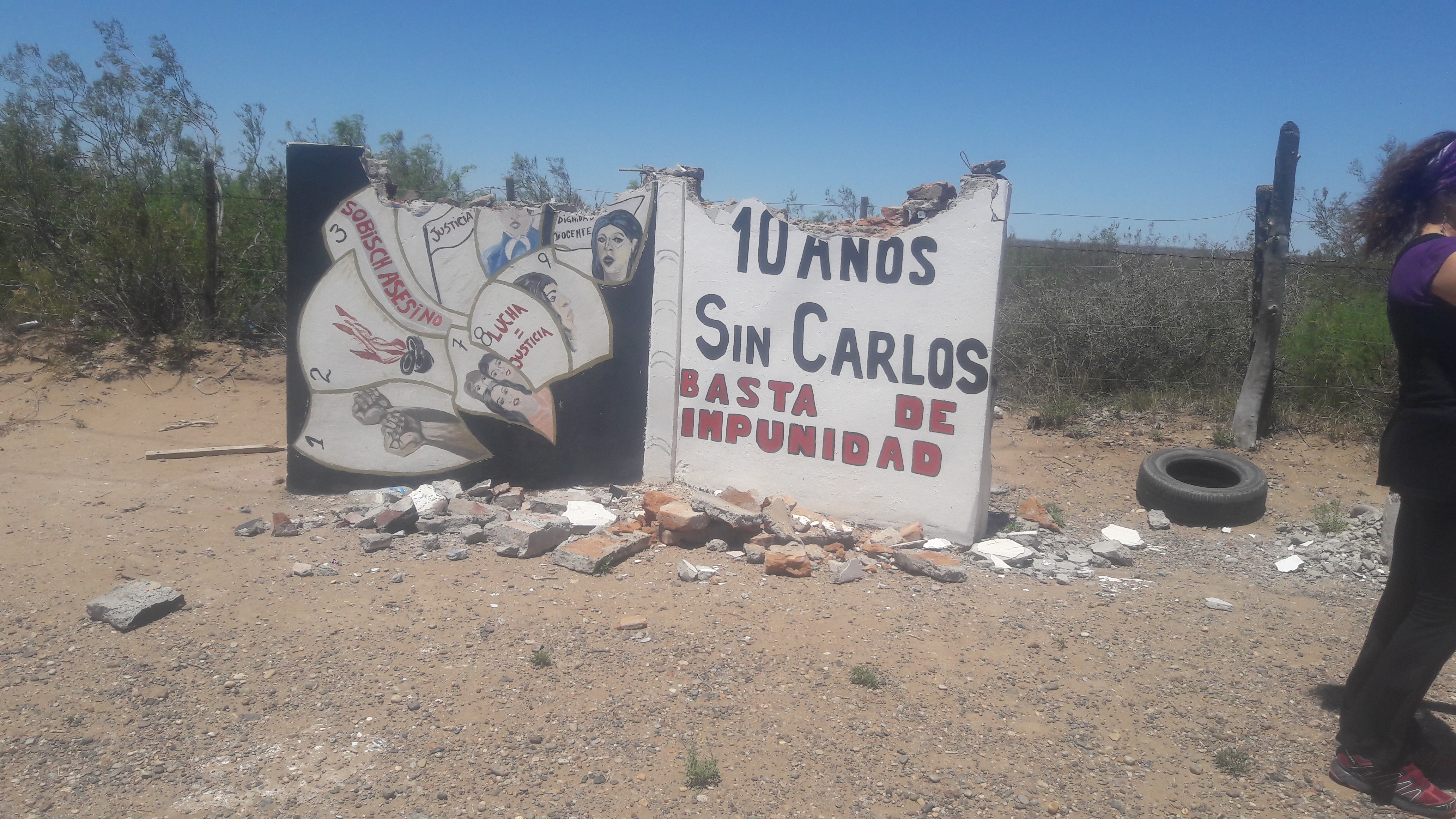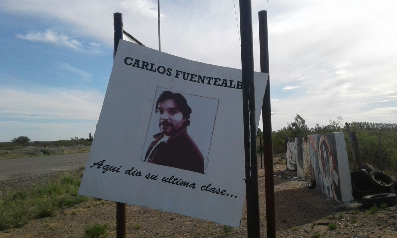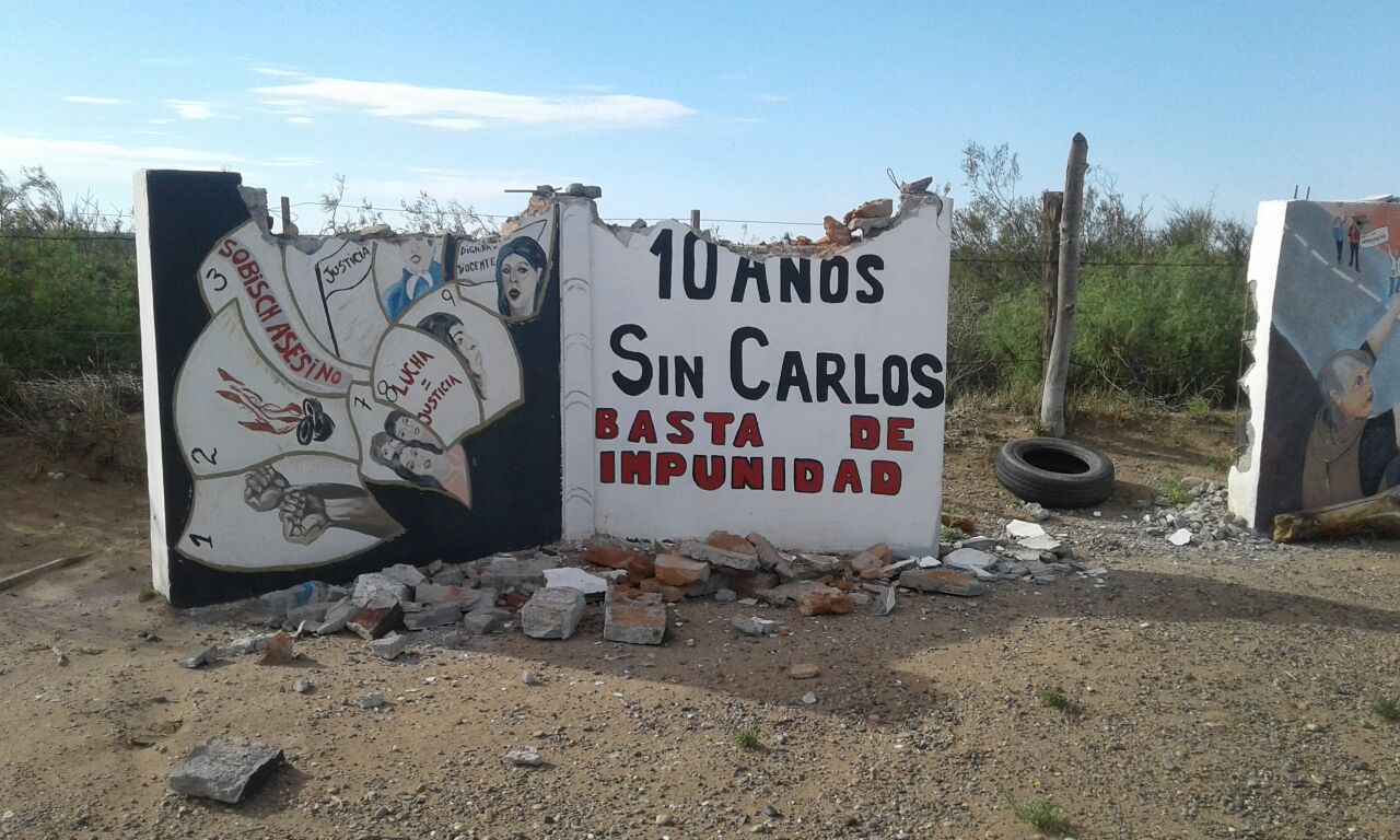 El 6 de diciembre nos hicimos presentes en Arroyito ante el monolito de Carlos siniestrado, para realizar un acto de desagravio. El ataque a este símbolo de nuestra lucha pretende enviar a las/los docentes un mensaje mafioso, intimidatorio de quienes pretenden que dejemos de luchar.