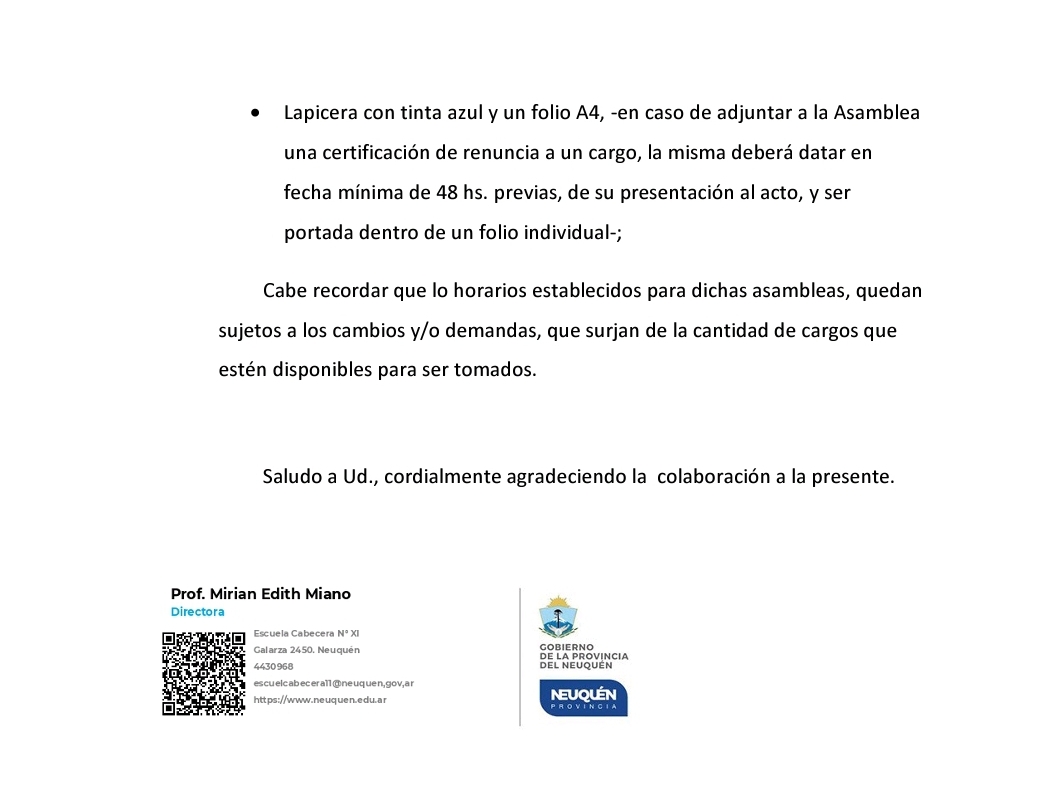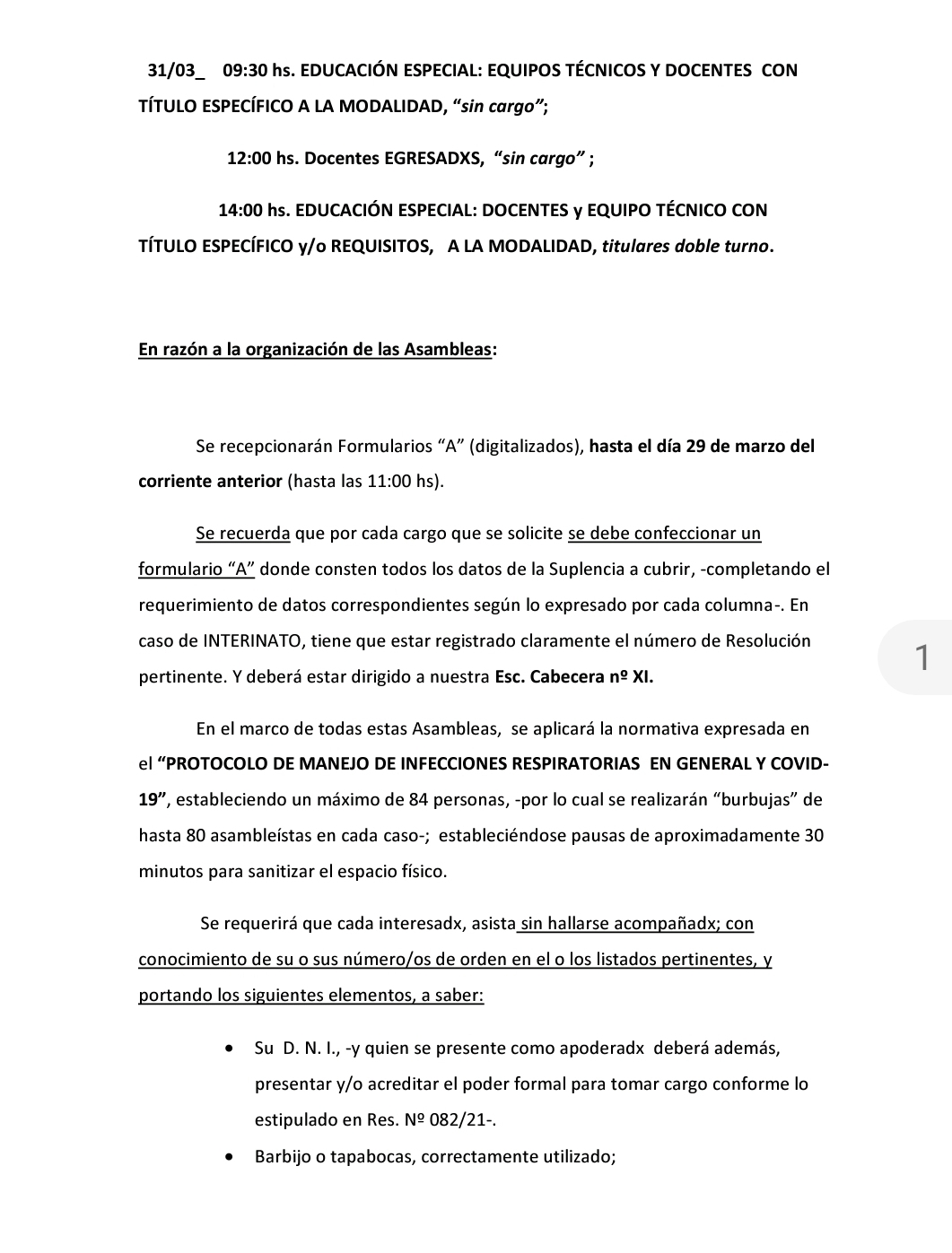 CRONOGRAMA DE ASAMBLEAS PRESENCIALES DE NIVEL PRIMARIO Y MODALIDAD ESPECIAL –