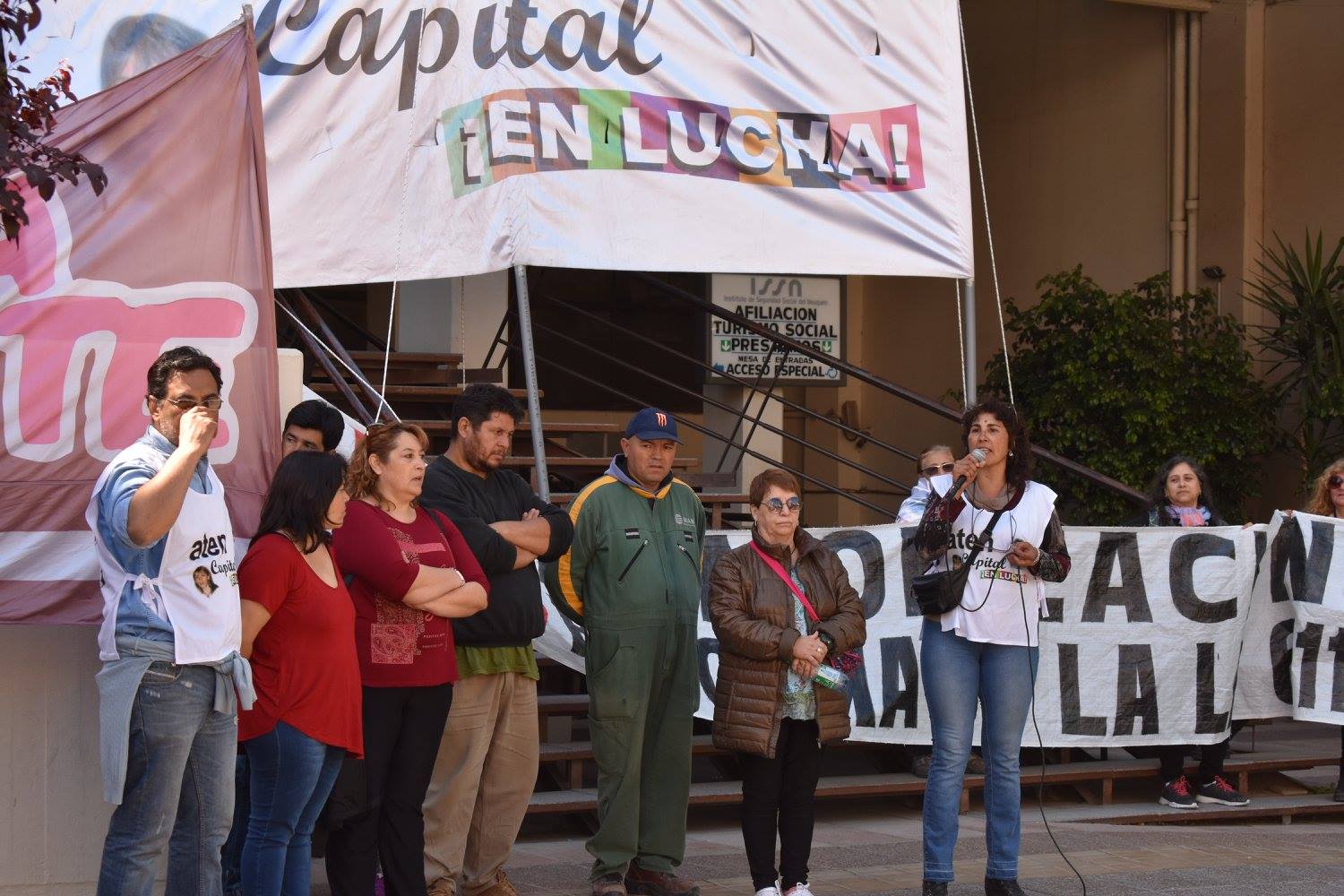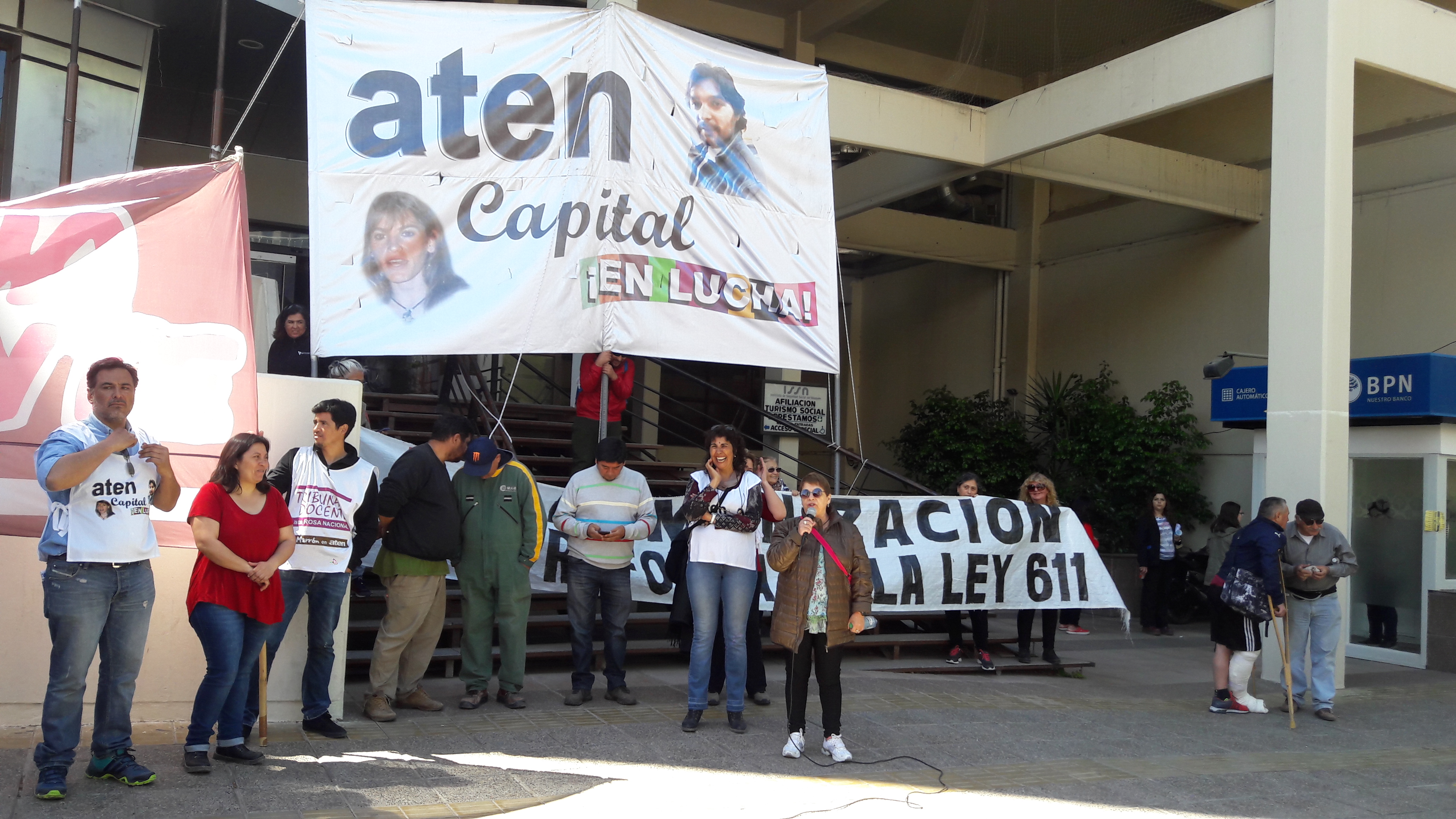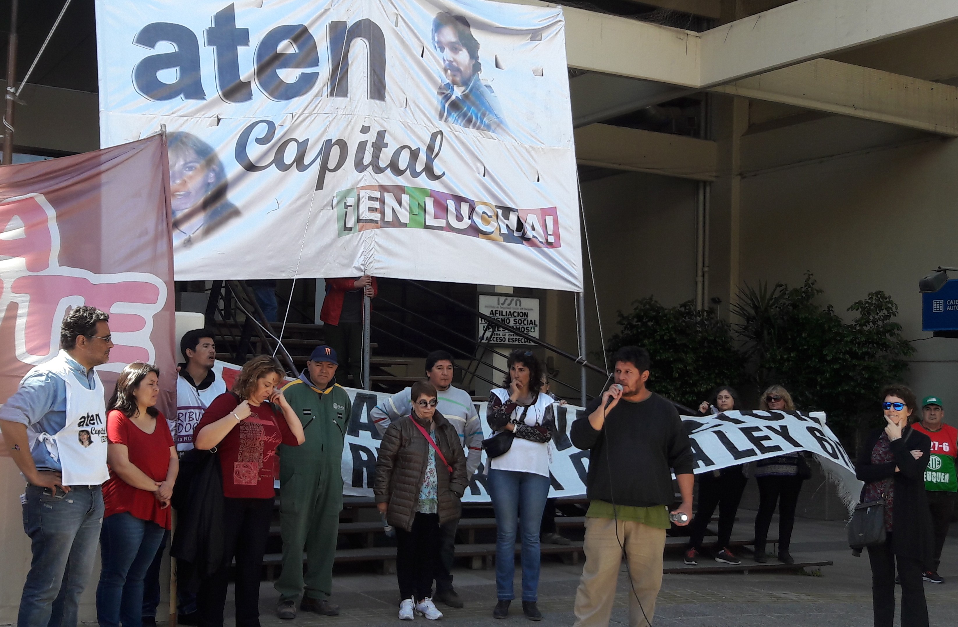 Parte de los discursos también se destinó a cuestionar la realización de un acto político el día de hoy en el marco de la campaña electoral, por parte de la conducción de ATE y de ATEN Provincial. La conducción provincial de ATEN ha diluido el programa de no reformar la ley 611, reprimió a quienes enarbolamos esa consigna en las marchas, con el objeto de hacer un frente común para las elecciones del ISSN con ATE, principal impulsor de esta reforma que propone la división de las cajas asistencial y previsional.