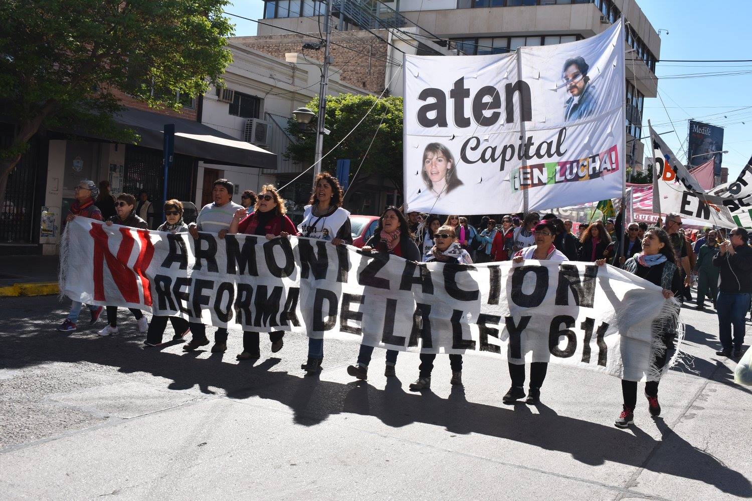 En el marco del PARO DE CTA contra la ARMONIZACIÓN y en defensa del ISSN, nos movilizamos detrás de la bandera con la consigna “NI ARMONIZACIÓN, NI REFORMA DE LA LEY 611”, las seccionales de ATEN -CAPITAL, PLOTTIER, ZAPALA, PIEDRA DEL ÁGUILA, EL CHAÑAR, PICÚN LEUFU-, Minoría de ATEN Provincial, Consejeras de ISSN, MOVIMIENTO DE JUBILADOS, con los compañeros del Centro de Jubilados Provinciales de ATE, ceramistas y de la maderera MAM para pedir una audiencia en casa de gobierno, exigiendo que el gobernador dé respuesta a los siguientes puntos: