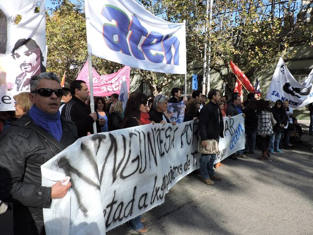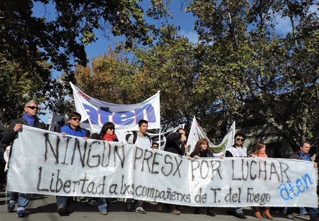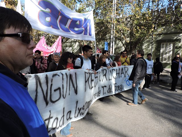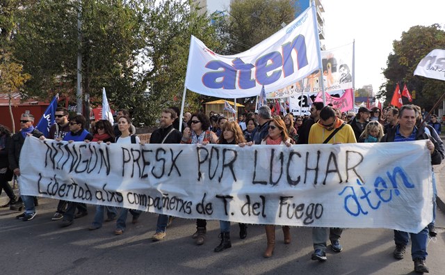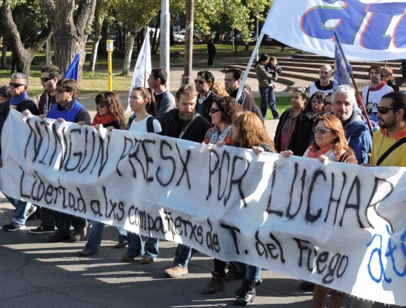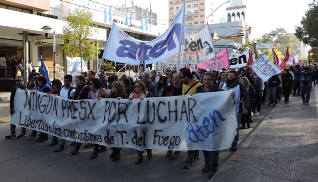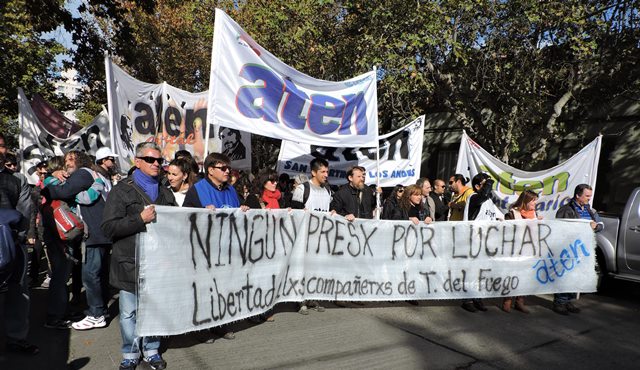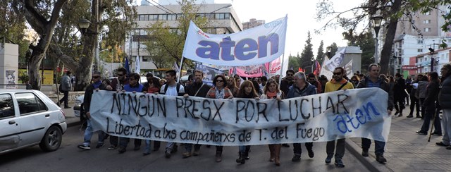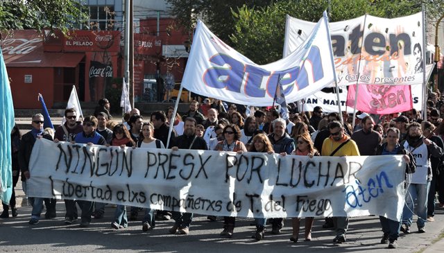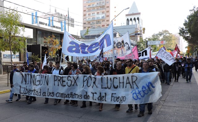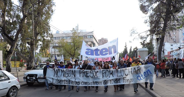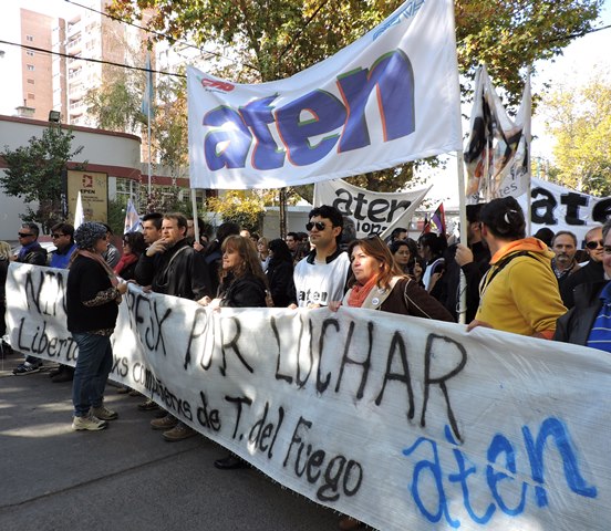El 4 de mayo, apenas tomamos conocimiento de la detención de los compañeros de Tierra del Fuego, como organización decidimos -de acuerdo al mandato histórico de Aten- declaramos paro y movilización, ante la gravedad de esta situación. Las detenciones de los compañeros que finalmente fueron liberados en el día de ayer, se produjeron de una manera que recuerda las peores épocas de la dictadura cívico militar: con allanamientos violentos de la policía de la provincia, en plena madrugada, con una violencia por la que el gobierno de Tierra del Fuego, la justicia y las fuerzas represivas deberán rendir cuentas. Estamos en alerta ante este tipo de situaciones que llevan a la suspensión de nuestros derechos y a la vuelta del estado de represión.